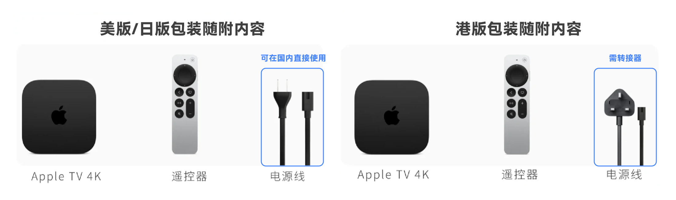 需要注意的是,不同地区版本的包装、插头规格不同。