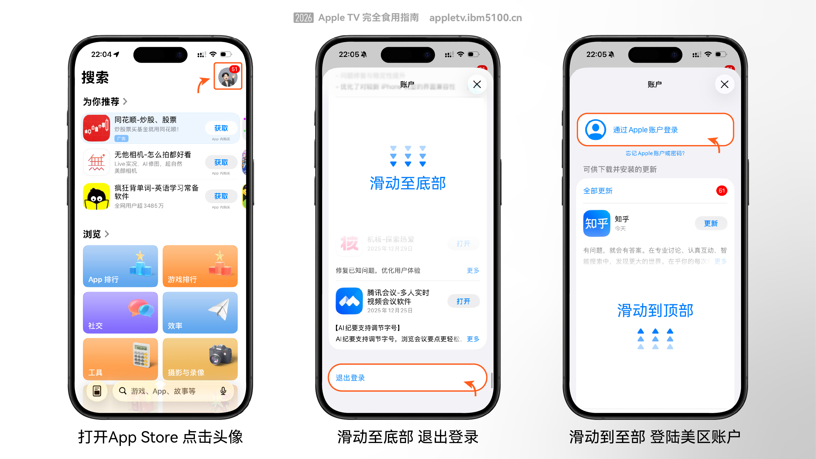 2.点击右上角头像,退出当前账户并登录美区账户。(若已登录美区账户则可跳过)