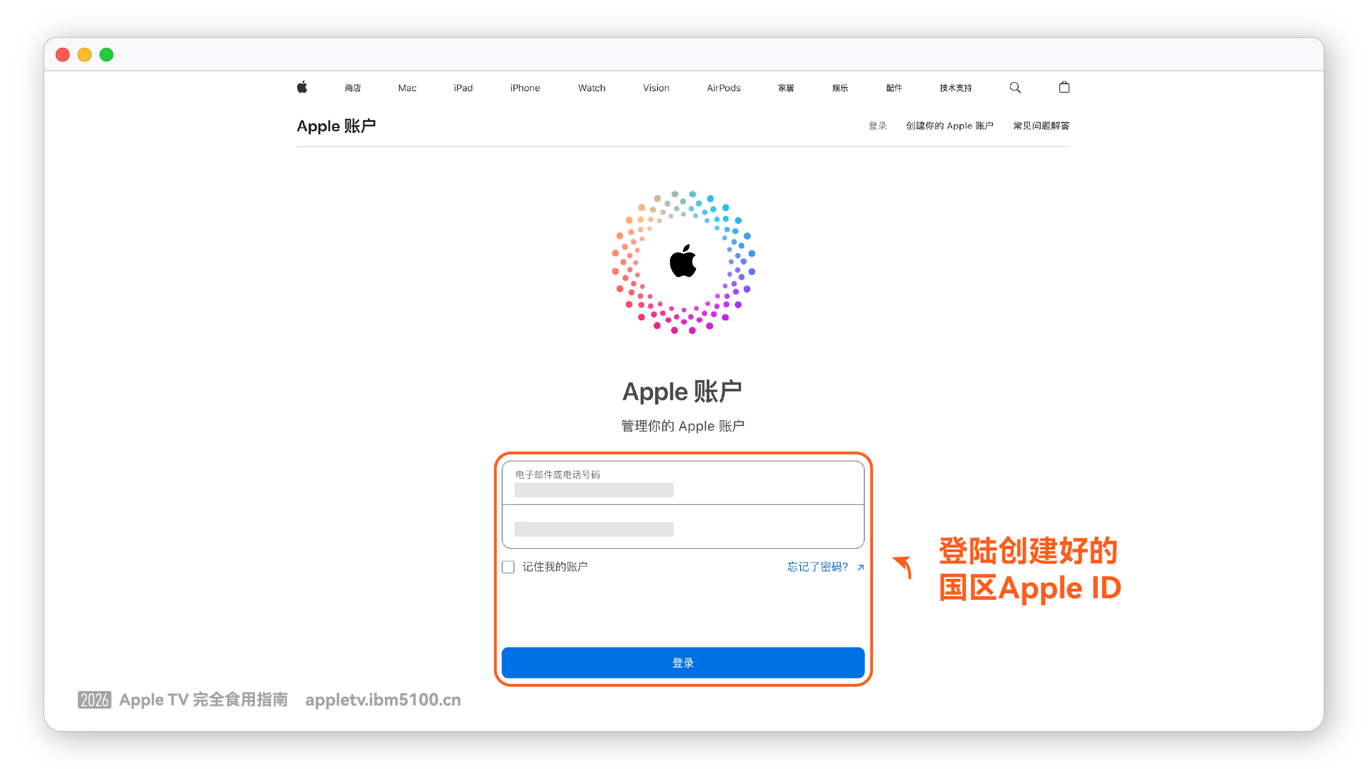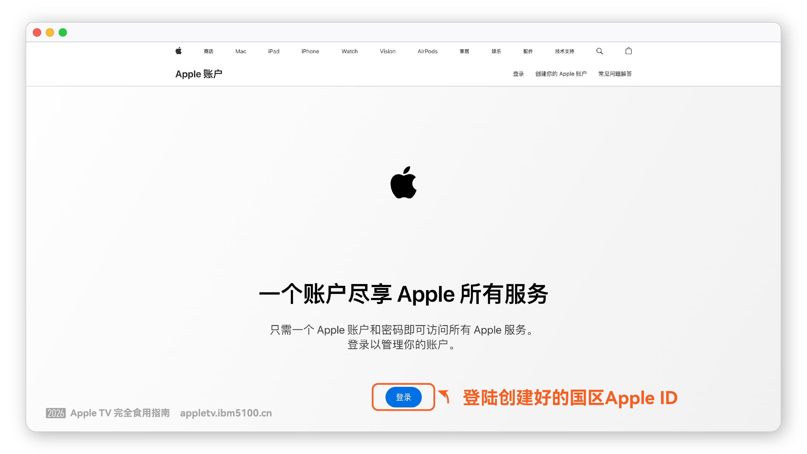 打开以上页面,按照正常流程创建一个国区Apple ID并登录。(不建议使用自己正在使用的国区Apple ID,建议新注册一个。)